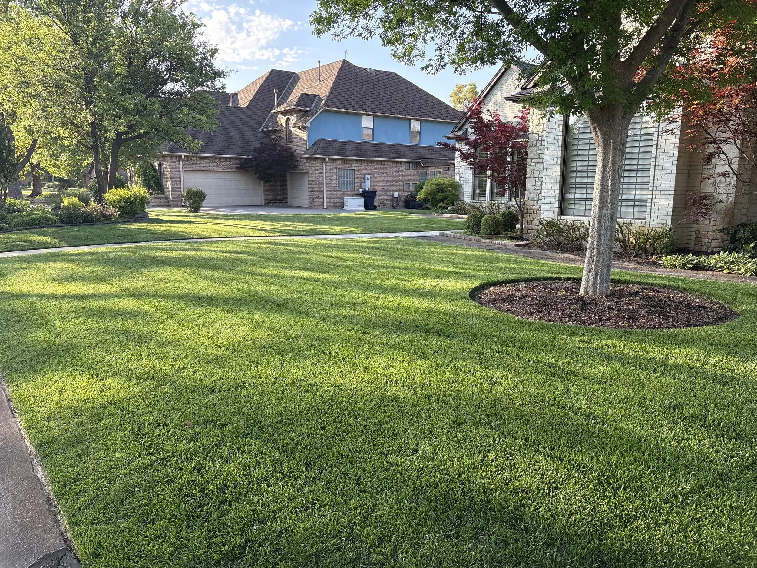 Bermuda, warm season turf, looks best through the summer heat when nighttime temperatures are consistently 65+. Bermuda respond well to regularly scheduled fertilizer applications, high in nitrogen during the summer.