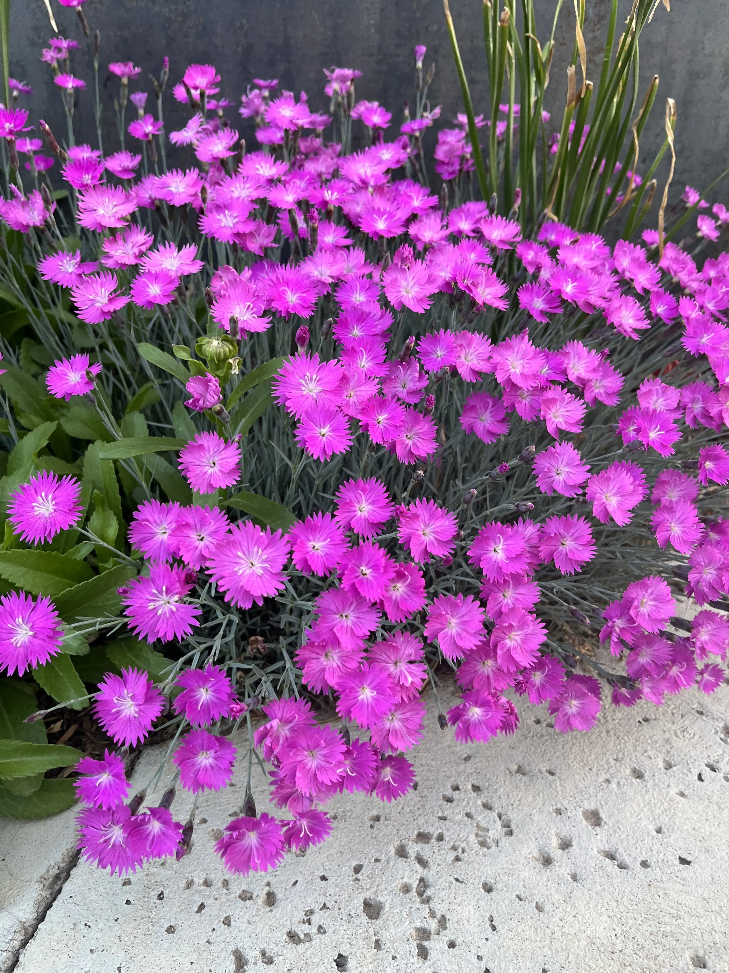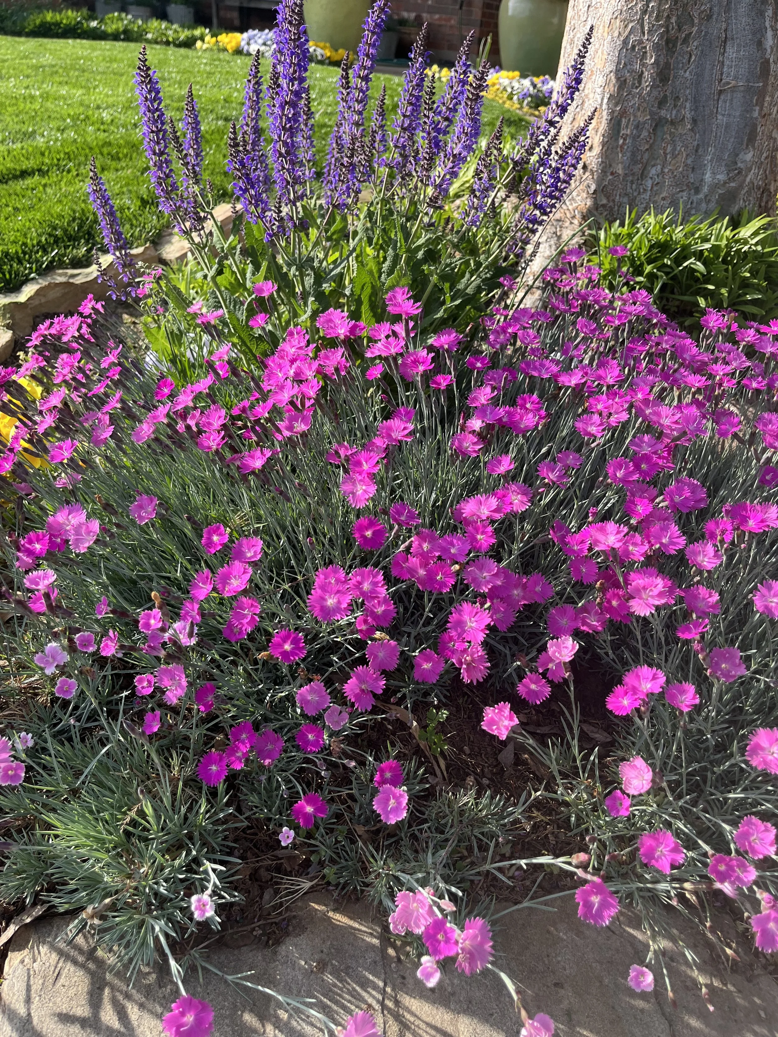 Salvia start adding blue to purple spikes this month. May Night Salvia is a great companion perennial to dianthus.