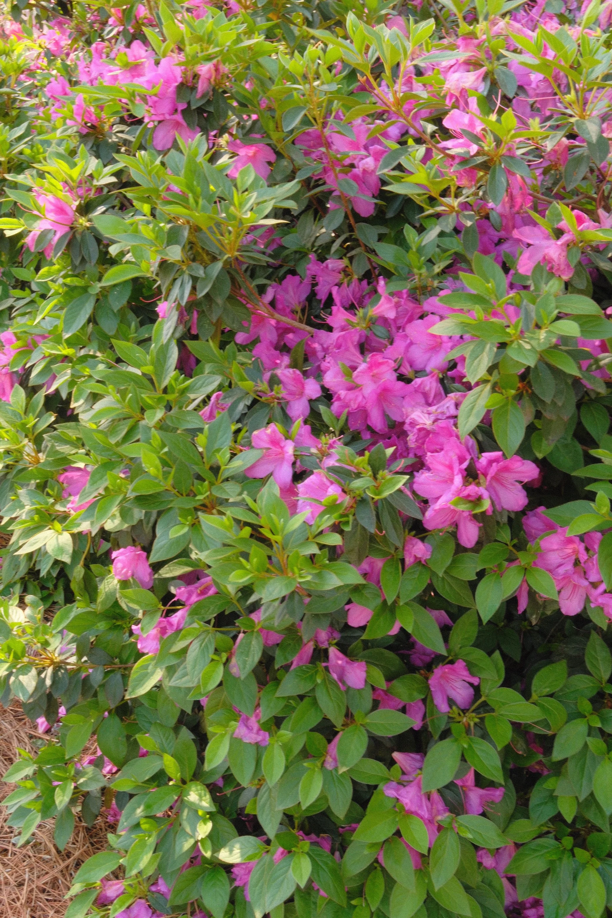20 year old Hino-Crimson Azaleas planted in a raised bed in a mixture of pecan hulls, peat moss, and pine bark with all the native soil removed.
