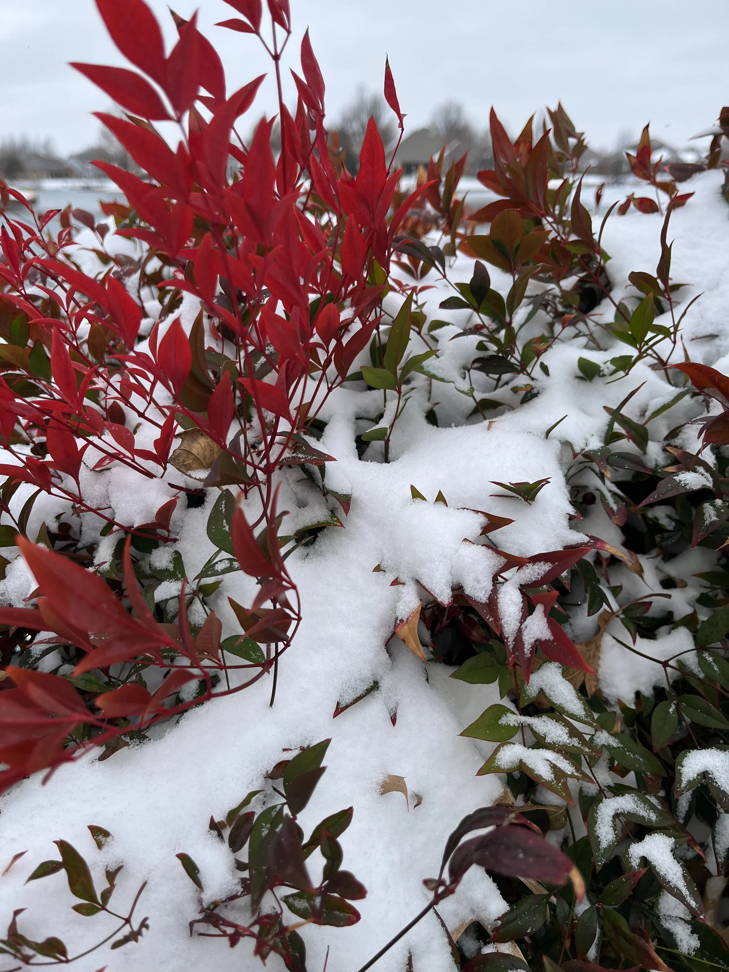 Most winters nandina hold bright colors creating interest in the winter landscape.