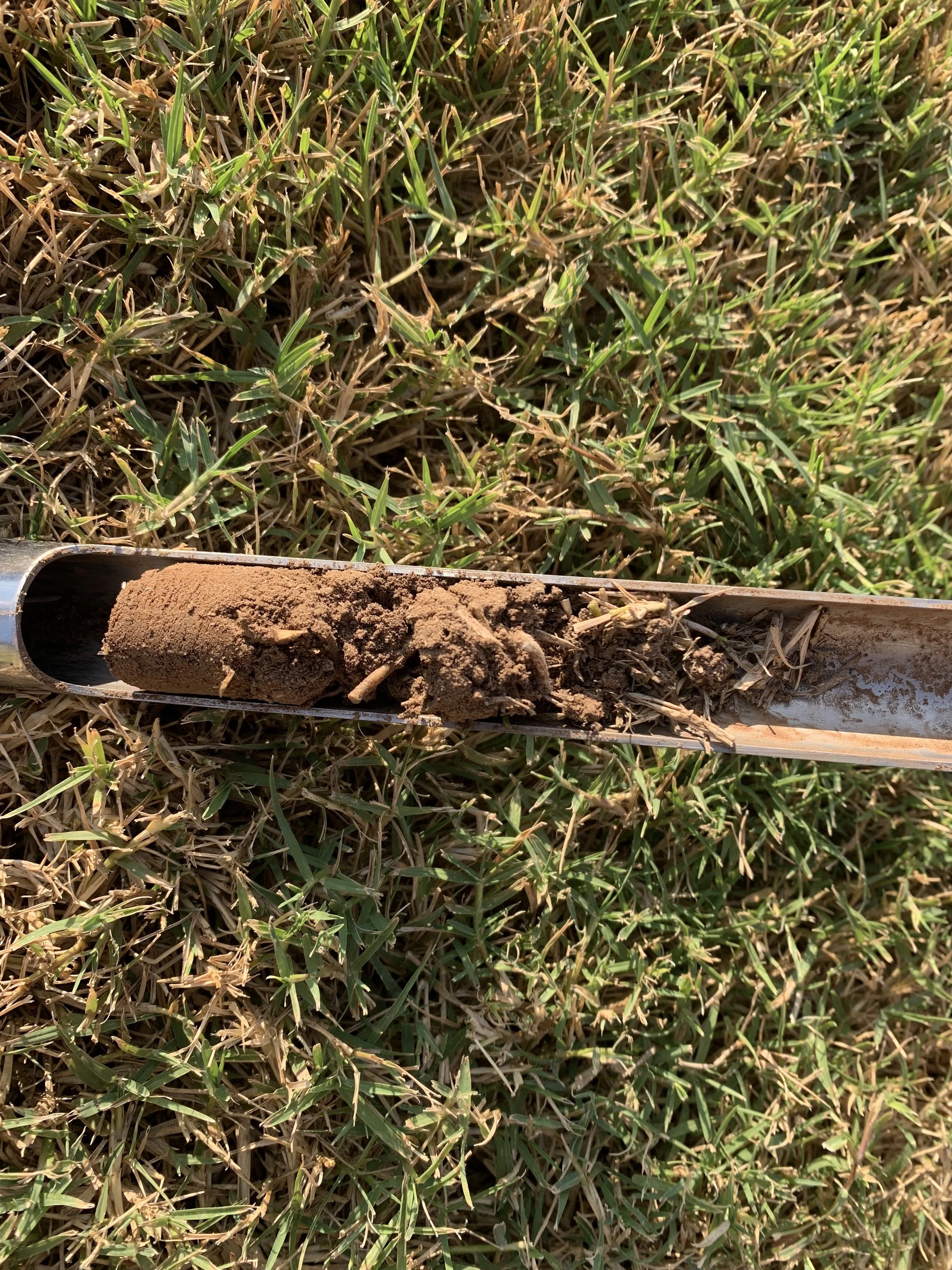 From lawns that have been watered deeply over the last 6-8 weeks, we are able to easily pull deep cores that have adequate soil moisture to withstand the summer heat.