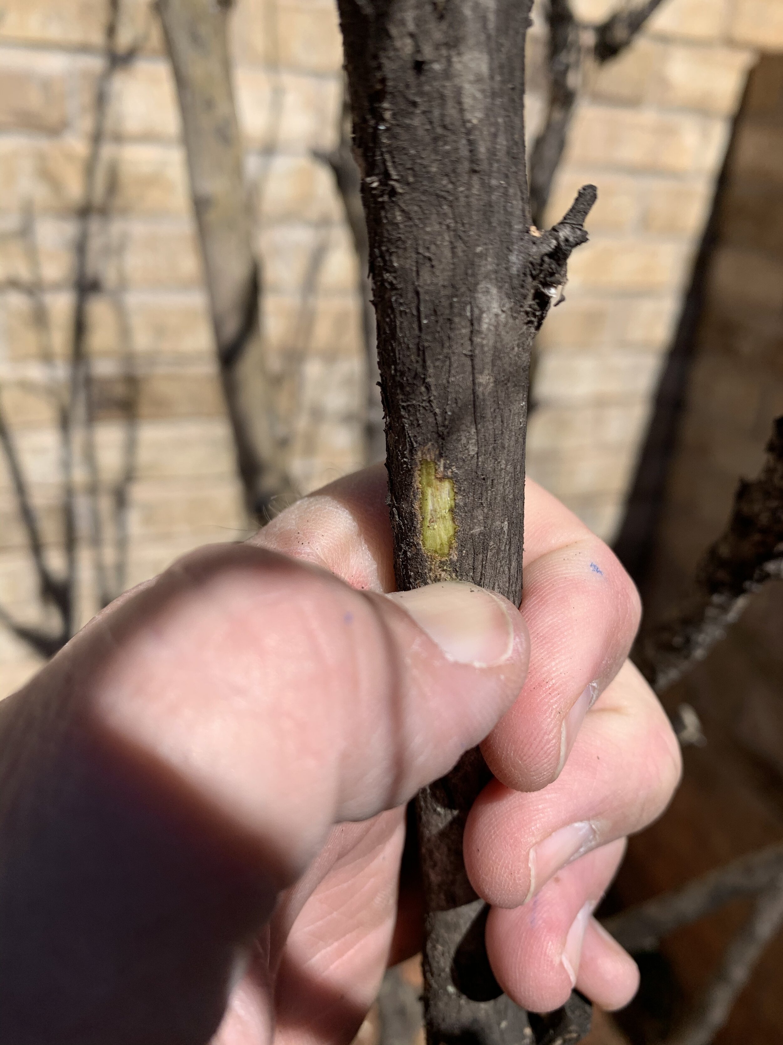 Another indicator is the condition of the buds on the tip of a stem. If the bud is hard and dry, the bud is dead. If the bud is soft and supple, the branch is alive.